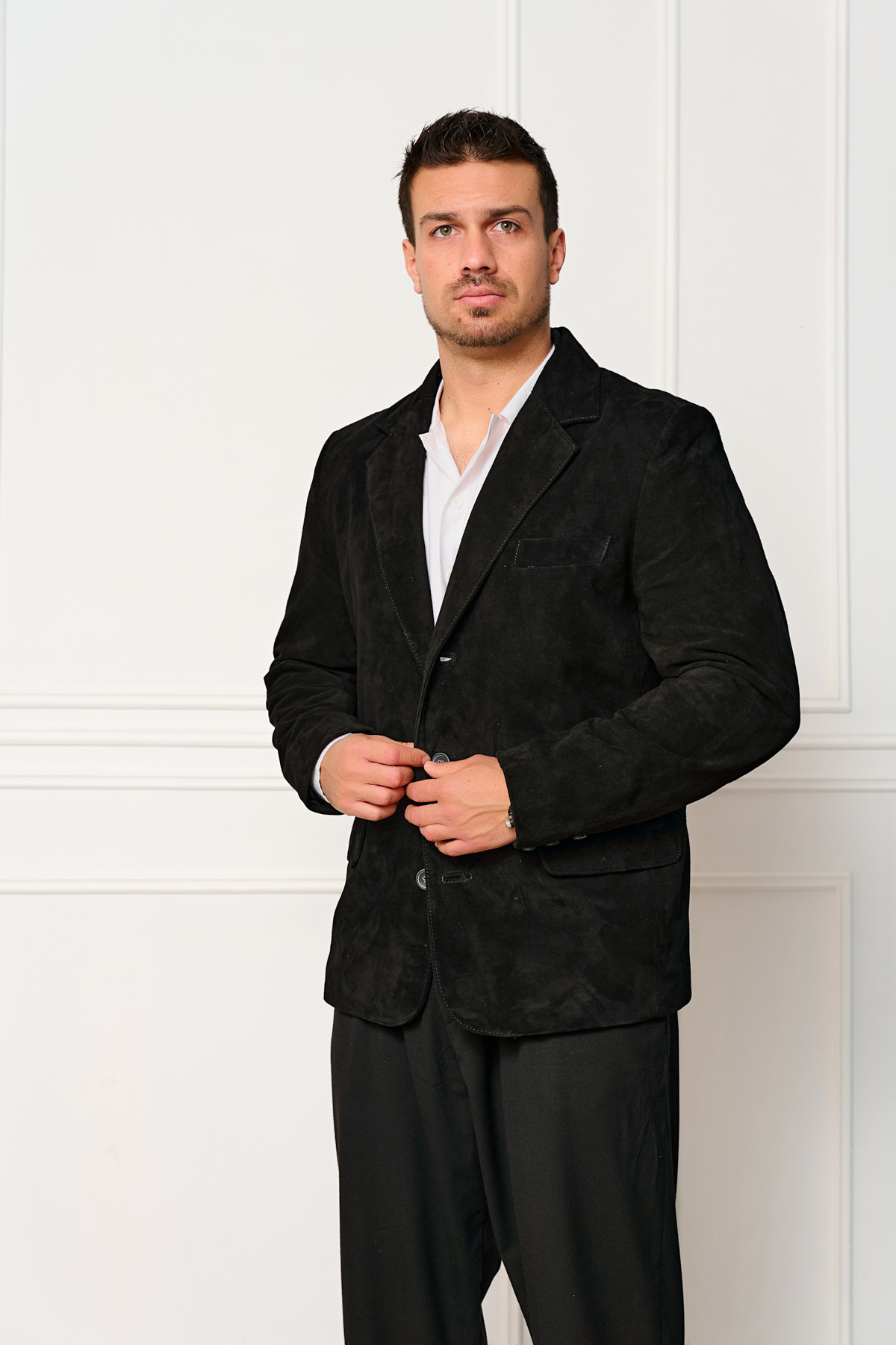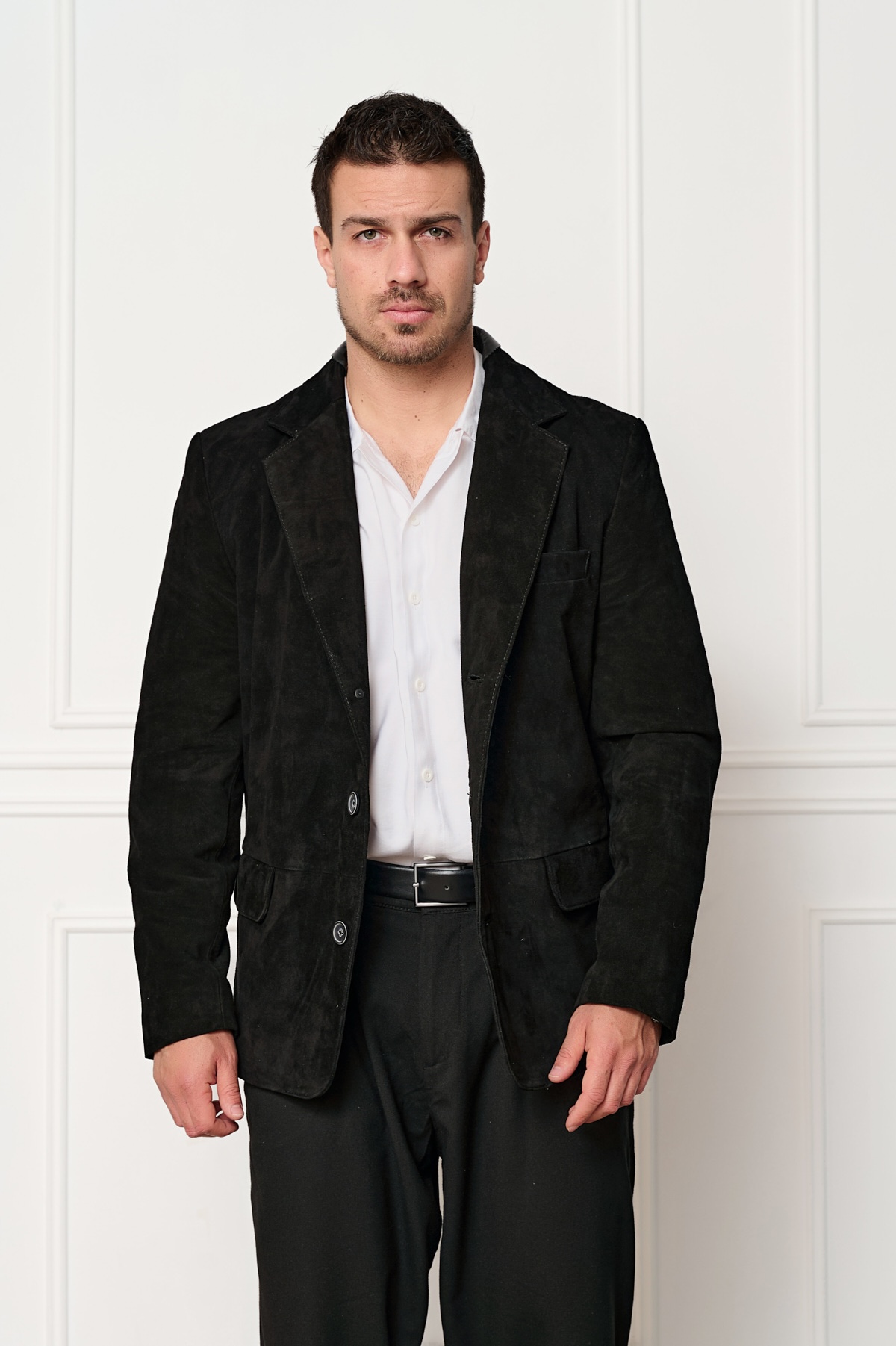 Ανδρικό δερμάτινο σακάκι μαύρο καστώρ