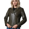 Γυναικείο δερμάτινο μπουφάν σταυρωτό